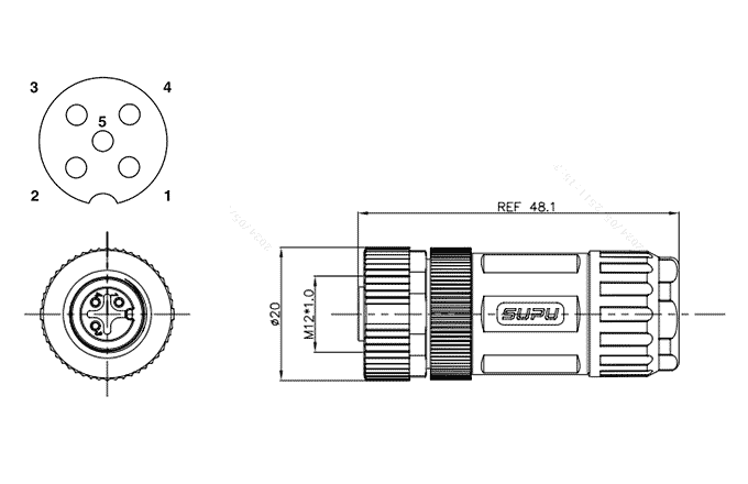 M12A Assembly lock screw type,straight female 5-core,unshielded,the diameter of the adapter wire is 6.0-8.0MM