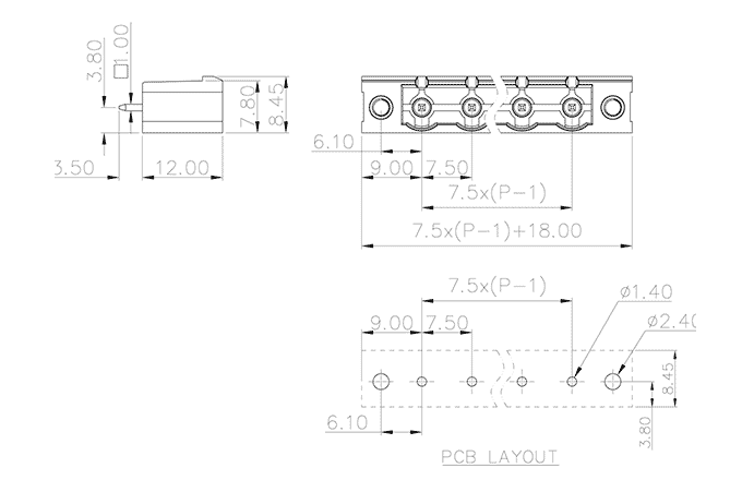 Pitch: 7.5mm