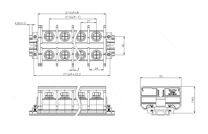 pitch:27.0mm,rated voltage UL600V, rated current UL150A, color: black, Rated cross section 20-2/0AWG